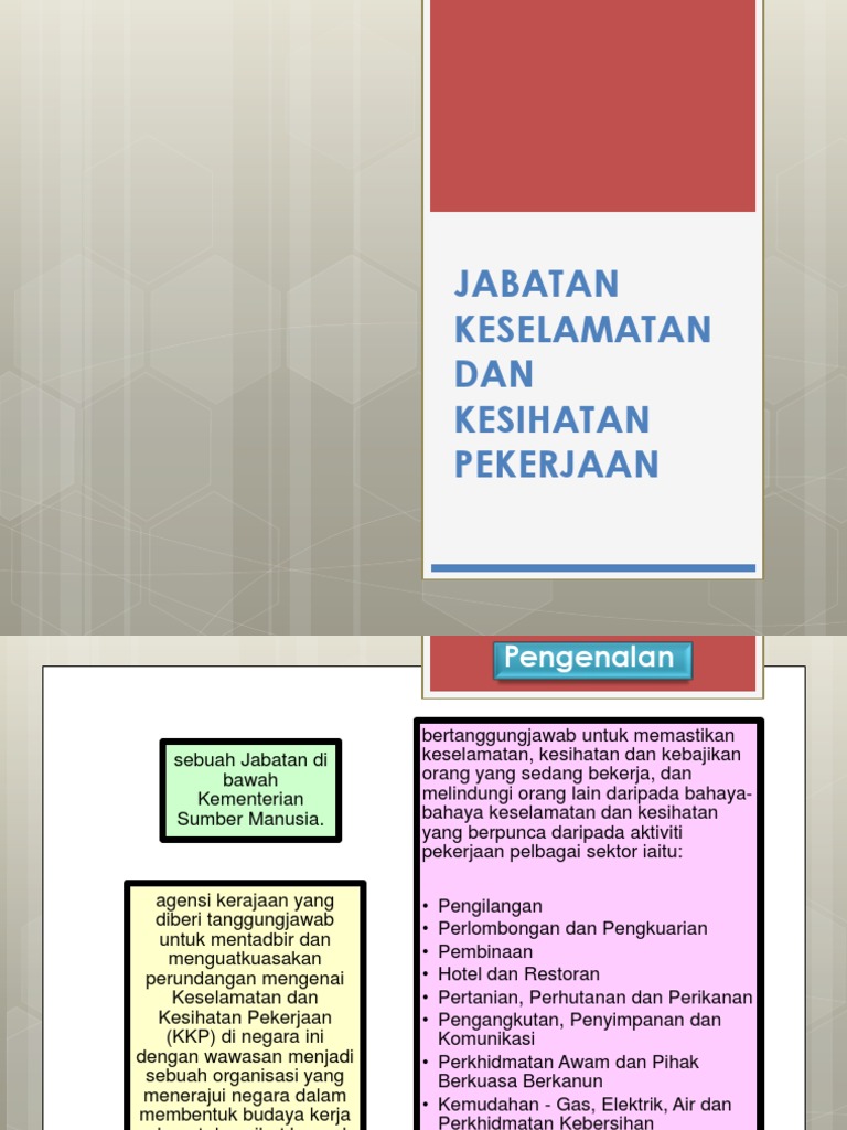 Keselamatan pekerjaan diperkenalkan oleh jabatan kilang dan jentera dari kementerian sumber manusia berikutan insiden letupan kilang mercun di kami amat menitikberatkan keselamatan dan kesihatan pekerjaan di tempat kerja. (ir mohamad razak ismail) ketua seksyen. Jabatan keselamatan dan kesihatan pekerjaan (jkkp) page 3 of 22. Adakalanya pegawai yang bertugas terlalai semasa bekerja. Tanggungjawab bagi memastikan aspek keselamatan dan kesihatan di tempat kerja itu, terletak di atas mereka yang mewujudkan risiko pekerjaan (majikan) dan mereka yang bekerja.