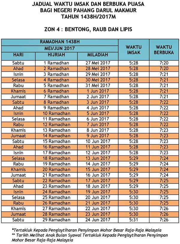 Penyusunan waktu solat fardhu telah diajarkan sendiri oleh malaikat jibrail kepada nabi muhammad s.a.w. Phg01 pulau tioman phg02 kuantan, pekan, rompin, muadzam shah phg03 jerantut, temerloh, maran, bera, chenor, jengka phg04 bentong, lipis, raub phg05 genting sempah, janda baik, bukit tinggi phg06 cameron highlands, genting higlands, bukit fraser. Bulan ramadhan tahun 2019 jatuh pada tanggal via tulisanviral.info. Waktu imsak, waktu imsak 2018, waktu imsak 2019, solat waktu imsak, waktu imsak 2019 kl, waktu imsak 2019 penang, waktu imsak bandung, waktu imsak 2018 bekasi, waktu imsak shah alam, jadual buka puasa 2011. Imsak time corresponds to the adhan time and begins at am according to the muslim world league and the fasting break time (maghrib) at pm.